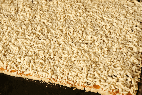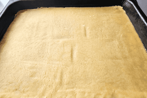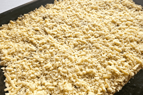 Замороженную часть теста натереть на терке и равномерно распределить.