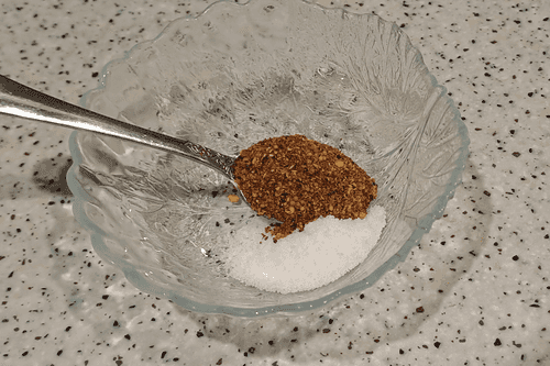 В отдельную емкость выложить 1 чайную ложку соли, 2 чайные ложки молотой смеси перцев, молотый кориандр по вкусу.