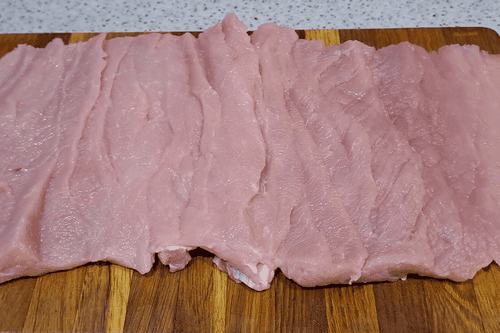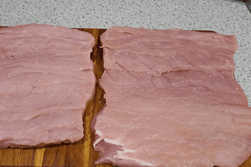 Каждый кусок отбить с обеих сторон накрыв пищевой пленкой.