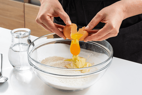 Смешать 250 грамм просеянной муки, 1 яйцо, щепотку соли, 30 грамм размягченного сливочного масла и 5 столовых ложек воды. Вымешивать до получения однородного и эластичного теста.