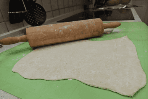 Скалкой раскатать пласт, увеличив его примерно в два раза.