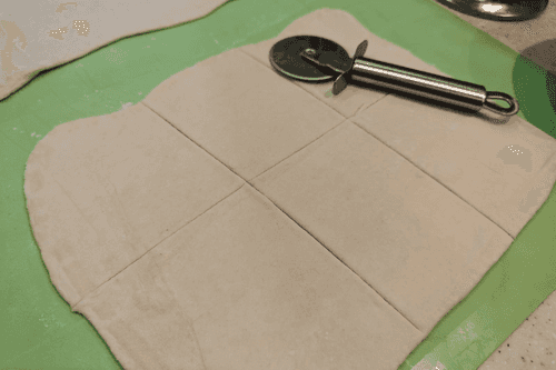 Раскатанное тесто разделить на шесть равных частей.