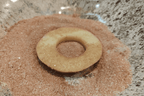Каждое колечко обмакнуть с обеих сторон в сахарной смеси.
