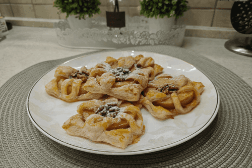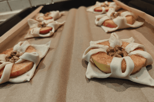 Слойки с яблоком, корицей и грецким орехом