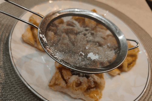 Готовые слойки посыпать сахарной пудрой.