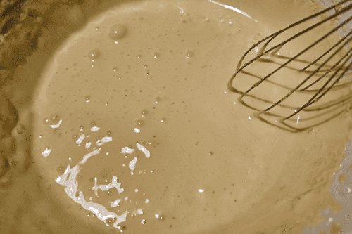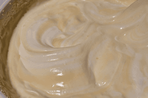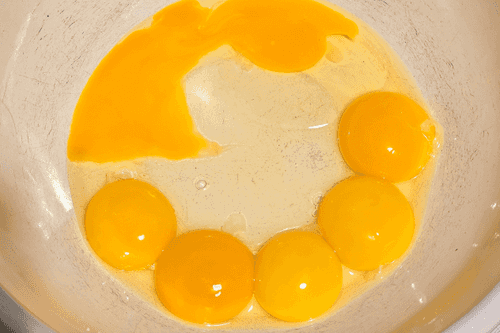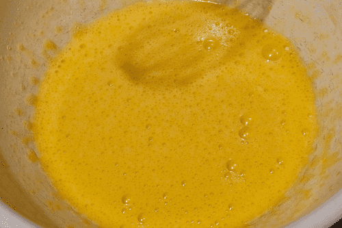 Продолжая взбивать яйца, влить сироп тонкой струйкой по стенке миски.