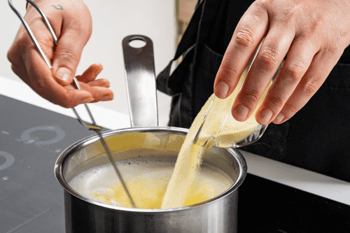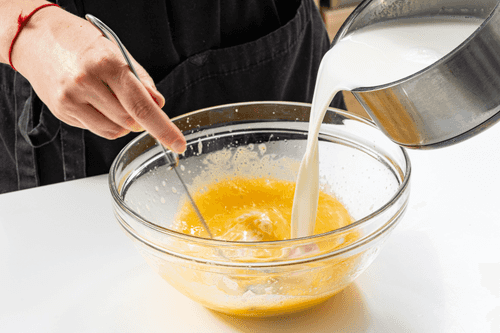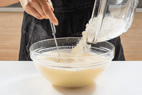 Постепенно смешать мучную смесь с молочной так, чтобы не осталось комочков.