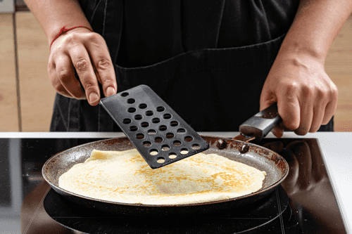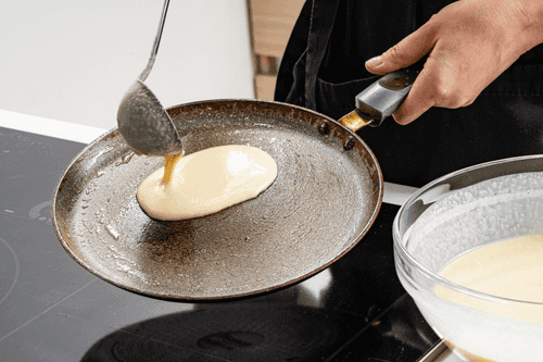 Хорошо разогреть сковороду и смазать ее растительным маслом. Вылить половник теста.