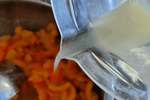 Влить сок к корочкам и туда же добавить 0,5 литра воды.