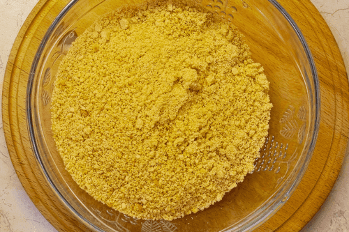 Растопить сливочное масло в микроволновке. Смешать корицу, измельченное печенье и растопленное масло.