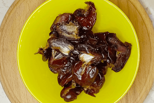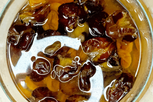 Сухофрукты залить на 15–20 минут горячей кипяченой водой.