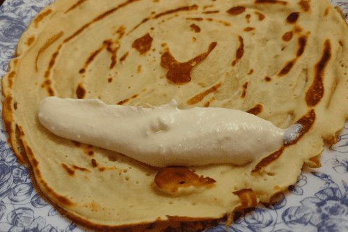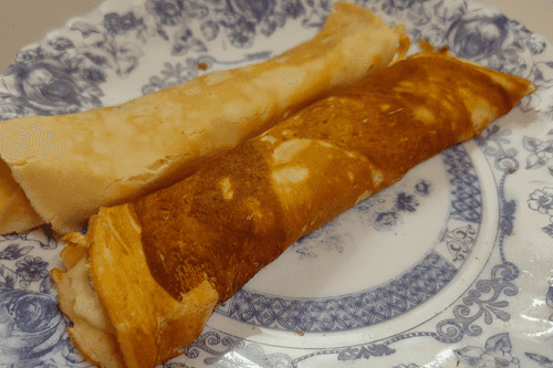 И свернуть трубочкой, не откладывая надолго, так как блинчики скоро становятся жесткими, они же будущие вафли.