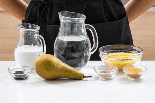 Постный пудинг из пшена с грушей