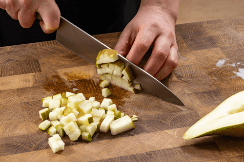 Грушу нарезать небольшим кубиком.