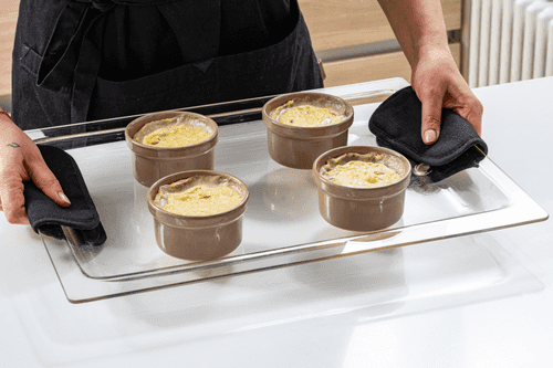 Достать рамекины из духовки, увеличить в ней температуру до 220 градусов.
