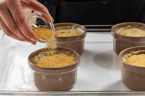 Посыпать пудинг оставшимся сахаром и вернуть в духовку еще на 5–10 минут, пока не образуется карамельная корочка.