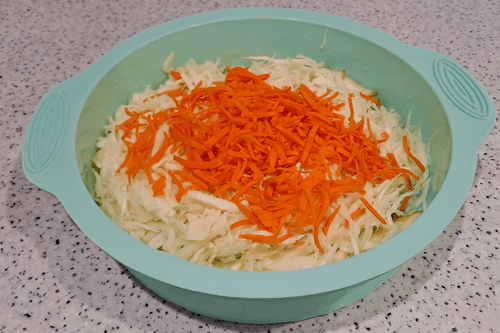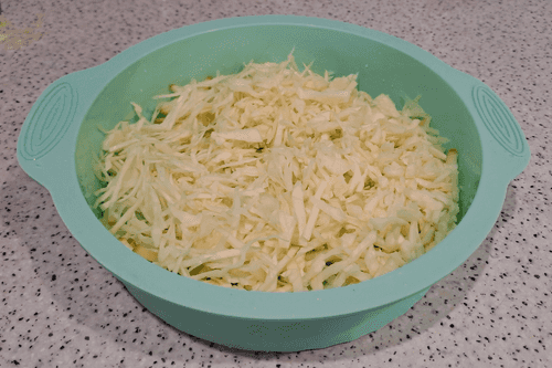 Капусту очистить, хорошо вымыть, нарезать соломкой и выложить в форму для запекания.