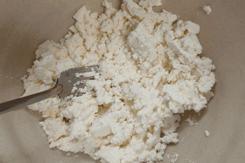 На размороженное и разложенное тесто выложить сыр (примерно 2 столовых ложки).