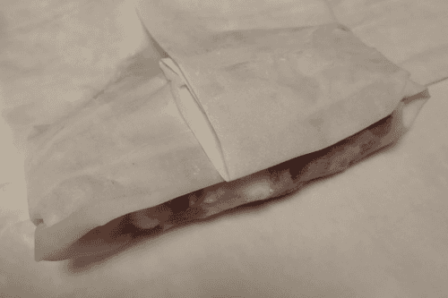 Начать сворачивать конвертик, сперва — оборот вдоль.