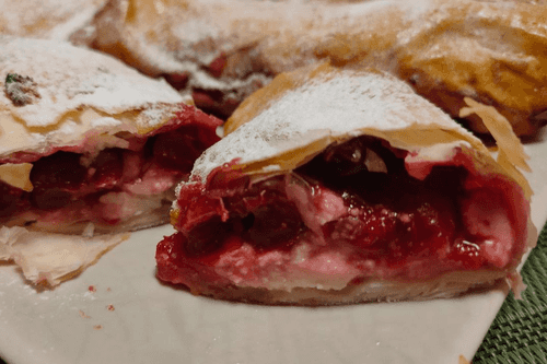 Конвертики с рикоттой и ягодами – это утонченное лакомство, вобравшее в себя нежность европейской кухни. Их истоки можно связать с традиционными французскими и итальянскими десертами, где воздушное тесто соединяет сочные фрукты и мягкий сыр. В этом рецепте используется фило, придающее хрустящую текстуру, а рикотта – сливочную нежность. Вишня и сливы добавляют кисло-сладкие ноты, идеально дополняя мягкость сыра. После запекания тесто становится золотистым и хрустящим, а начинка сохраняет свою сочность. Эти конвертики – прекрасный выбор для утреннего чаепития или легкого десерта после ужина. Их подают слегка остывшими, украшенными сахарной пудрой, что делает их еще более изысканными. Простота приготовления и гармония вкусов делают их идеальным лакомством для тех, кто ценит утонченную и сбалансированную сладость.