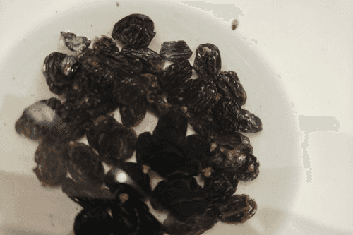Залить кипятком изюм и дать постоять 10 минут.