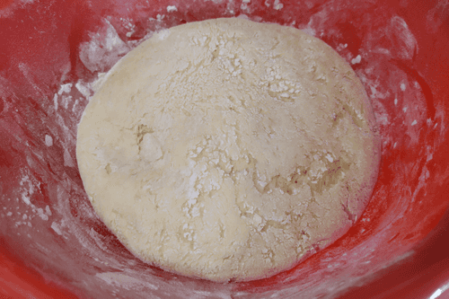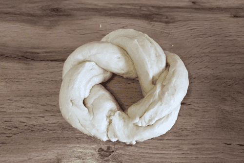 Скатать тесто в длинную колбаску.