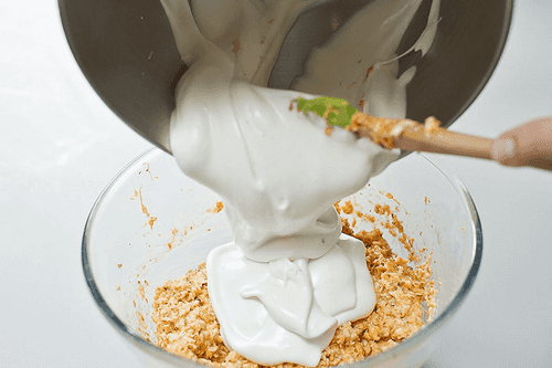 В отдельной чистой и сухой миске венчиком взбить белки с оставшимся сахаром в плотную пену и аккуратно лопаткой или деревянной ложкой вмешать ее в морковно-ореховое тесто.