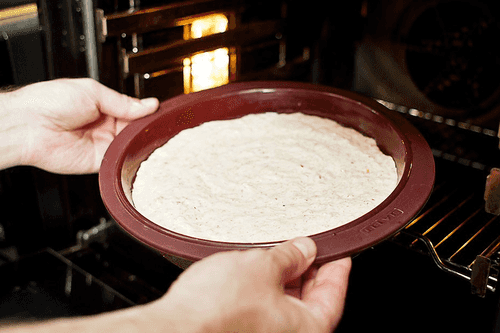 Тесто перелить в предварительно смазанную небольшим количеством растительного масла глубокую форму. Выпекать чуть меньше часа при температуре 180 градусов.