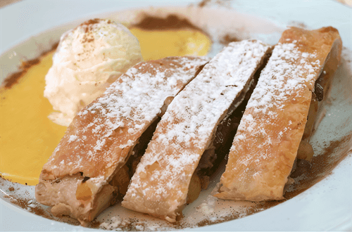 Штрудель с яблоками и медом — изысканный десерт венгерской кухни, обладающий тонким балансом сладости и пряности. Этот рулет с хрустящей золотистой корочкой скрывает внутри нежную начинку из яблок, пропитанную ароматом корицы и легким карамельным оттенком меда. Считается, что штрудель берет свое начало в Австрии, но венгерская кухня внесла в него свои уникальные штрихи. Сладкие яблоки и мед придают ему насыщенный вкус, а добавленные сухари делают начинку более плотной и насыщенной. Подается он горячим, что позволяет меду глубже проникнуть в тесто, делая его еще более аппетитным. Прекрасный выбор как для уютных домашних вечеров, так и для праздничных застолий.
