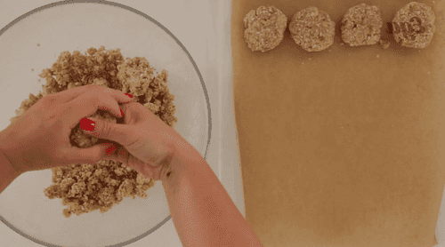Затем столовой ложкой или руками сформировать печенья и уложить на противень, предварительно проложив его бумагой для запекания.