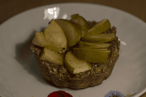 В перемолотые орехи добавить муку, разрыхлитель, масло и мед. Замесить тесто и выложить по стенкам в формочки для тарталеток.