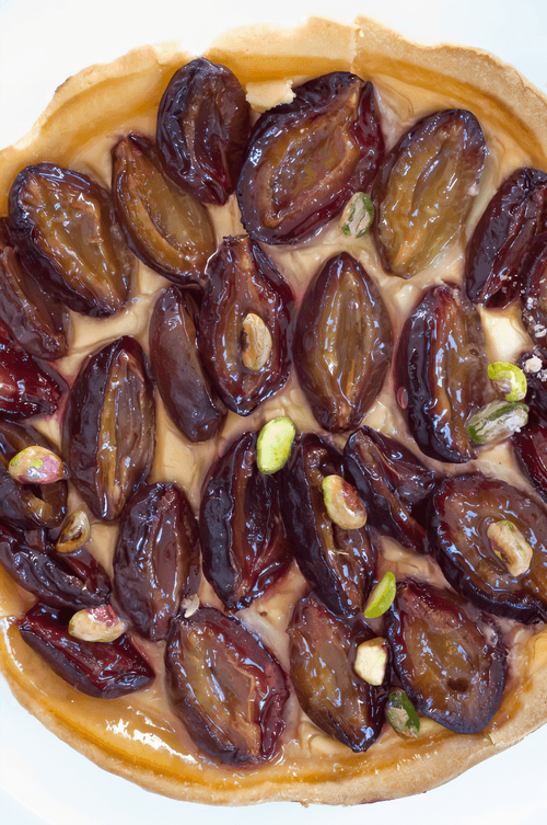 Черные или красные сливы нарезать дольками (в зависимости от размера - четвертинками или восьмушками) и на 15 минут замочить в смеси арманьяка и сахара (1 столовая ложка).
