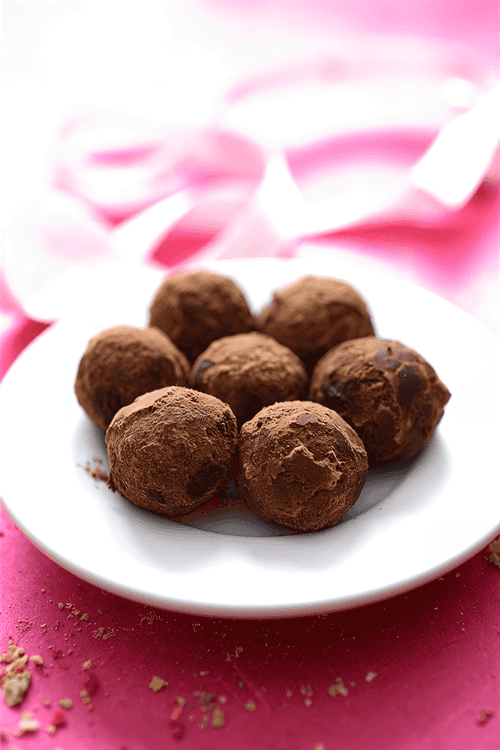 Выложить шоколадные шарики на поднос и отправить в морозилку на 30–40 минут.