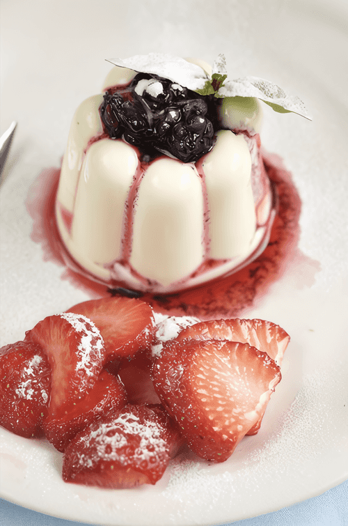Панна-котта с черничным компотом — изысканный десерт итальянской кухни, сочетающий нежность сливочной текстуры с богатым ягодным вкусом. Этот десерт, родом из северных регионов Италии, стал любимцем гурманов благодаря своей элегантной простоте. Ваниль и корица наполняют основу теплыми ароматами, а йогурт придаёт лёгкую кислинку, уравновешивающую сладость. Черничный компот с марсалой обогащает блюдо фруктовыми нотами, создавая гармонию вкусов. Панна-котта подаётся охлаждённой, её шелковистая консистенция тает на языке, а ягоды добавляют свежесть. Этот десерт идеально подходит как завершение изысканного ужина или уютного чаепития.