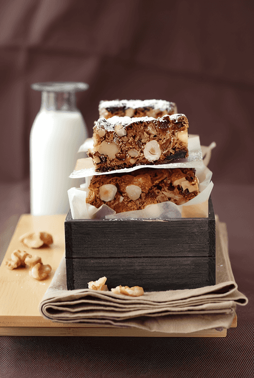 Выложите тесто ровным слоем в форму и выпекайте до готовности примерно 25-30 минут. Охладите в форме, переложите на блюдо и порежьте на квадраты.