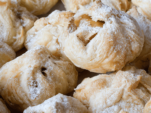 Слоеные мешочки с сахарной пудрой – изысканный десерт европейской кухни, вдохновленный традиционной выпечкой. Хрустящее тесто, прошедшее многократную обработку, приобретает невесомую воздушность, а сахарная пудра добавляет нежную сладость. Эти изящные мешочки напоминают карамельные облака, тающие во рту. Жареные в масле до золотистой хрусткости, они прекрасно сочетаются с горячим чаем или ароматным кофе. Их можно подавать как самостоятельное лакомство или дополнение к десертным соусам. Исторически такие изделия создавались в аристократических домах, где умение готовить тонкое тесто считалось искусством. Сегодня слоеные мешочки украшают столы в уютных кофейнях и домах, радуя гурманов своей простотой и утонченным вкусом.