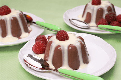 Отделить пудинг от стенок формочки и выложить вверх дном на порционную тарелку. При желании полить нежирными сливками и украсить свежими ягодами.