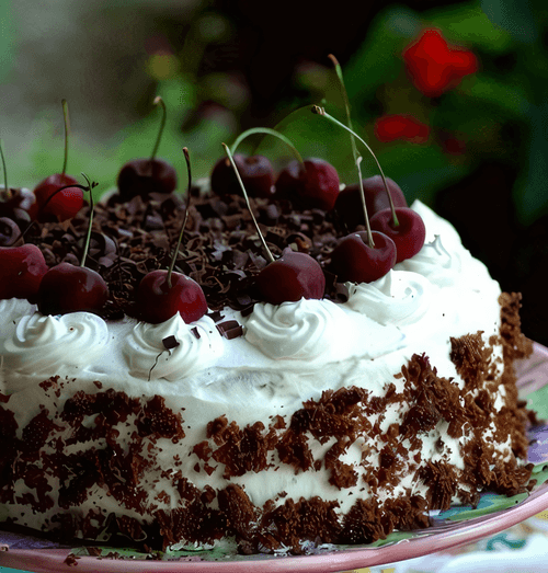 Торт «Черный лес» — это истинное воплощение немецкой кулинарной традиции, рожденное среди зеленых холмов Шварцвальда. Его насыщенный шоколадный бисквит пропитывается ароматным вишневым сиропом, создавая идеальный баланс сладости и кислинки. Вишня, спрятанная между слоями воздушного сливочного желе и нежного шоколадного крема, добавляет освежающую фруктовую ноту. Ликер придаёт глубину вкуса, а легкость взбитых сливок делает каждое наслаждение этим десертом незабываемым. Этот торт — не просто лакомство, а произведение искусства, созданное для торжественных моментов и уютных вечеров. В каждом кусочке — гармония текстур и насыщенность вкусов, которая пробуждает самые приятные гастрономические эмоции.