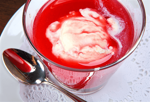 В бокалы или креманки выложите фруктовый компот и сверху украсьте ванильными сливками.