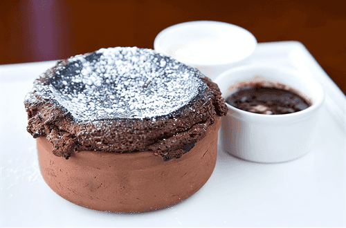 Шоколадное суфле с белым шоколадным кремом — изысканный десерт французской кухни, покоряющий своей воздушностью и богатым вкусом. Нежное суфле, приготовленное на основе темного шоколада, с легкими нотками кофе и бренди, создаёт глубокий, насыщенный аромат. Его текстура — одновременно легкая и шелковистая, тает во рту, оставляя приятное шоколадное послевкусие. Дополняет его белоснежный крем из белого шоколада и взбитых сливок, который придает десерту мягкость и контраст. Этот элегантный десерт идеально подходит для романтического ужина или праздничного застолья. Шоколадное суфле — это момент наслаждения, тонкий баланс вкусов и текстур, который подчеркивает искусство французской кулинарии. Подавать горячим, посыпав сахарной пудрой, чтобы подчеркнуть его воздушность и теплоту.