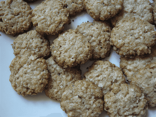 Половину пачки масла растопить на сковородке и обжарить в нем просеянные овсяные хлопья.