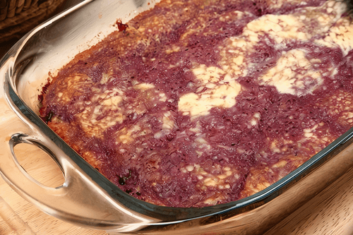 Выложить получившуюся массу в форму для микроволновой печи, поставить на решетку и запекать 25 минут при мощности 450 Вт. Готовое блюдо оставить в печи еще на 5 минут.