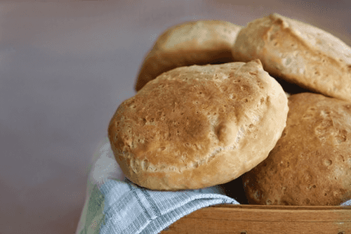 Вырезать лепешки разной формы и разложить их на противне, смазанном маслом и посыпанном мукой.