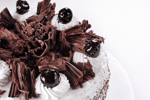 Обмазать торт оставшимся кремом и украсить шоколадной стружкой.