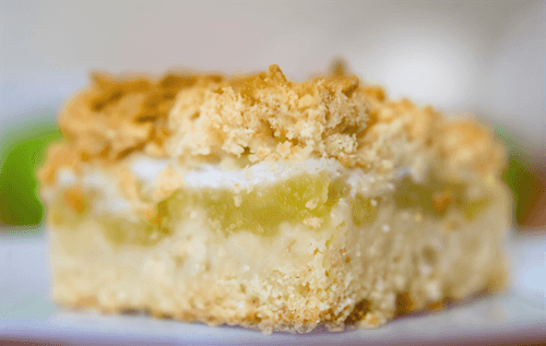 Размягченный маргарин смешать с мукой в большой чашке, добавить соду. 3/4 стакана сахара растереть с желтком, смешать с мукой и маргарином. Нужно немного помесить массу руками. В результате должна получиться рассыпчатая масса, состоящая из маленьких комочков. 2/3 этой массы высыпаем в разъемную форму, смазанную маргарином. Яблоки трем на терке, выкладываем на наше рассыпчатое тесто в форму и сбрызгиваем лимонным соком.
