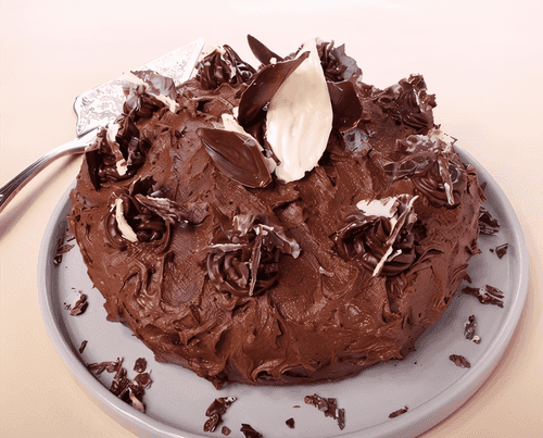 Украсьте торт белыми трюфелями и какао.