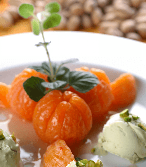 Залить мандарины сиропом. Подавать со сливочным мороженым.