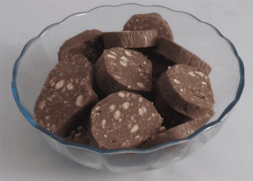 Десертная колбаса из печенья и какао — это уютное воспоминание о детстве и теплых семейных вечерах. Этот сладкий десерт, родом из украинской кухни, завоевал любовь благодаря простоте приготовления и насыщенному вкусу. Нежная текстура, созданная сочетанием печенья, сгущенного молока и сливочного масла, гармонично дополняется оттенками какао и хрустящими кусочками миндаля. Легкая нотка коньяка придаёт ему изысканность. Его подают охлажденным, нарезая на ломтики, что делает его удобным угощением для чаепития или праздников. Колбаса без выпечки идеально подходит для тех, кто хочет порадовать себя и близких сладостью, не затрачивая много времени на готовку.