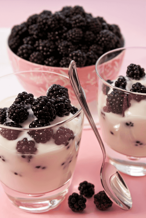 Разложить ежевику по 4 креманкам и сверху выложить йогуртовую смесь. Сверху полить апельсиновым медом и подавать.