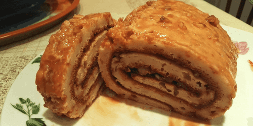 Рулет — это изысканное и нежное лакомство русской кухни, вобравшее в себя лучшие традиции домашней выпечки. Его происхождение связано с простыми, но изысканными десертами, которые готовили еще в старину, используя доступные ингредиенты. Этот рулет обладает воздушной текстурой благодаря сгущенному молоку и гашеной соде, а его аромат раскрывается нотками ванили. Внутри — мягкая творожная начинка, которая придает ему особую нежность и приятную кислинку. Подается рулет в охлажденном виде, идеально сочетаясь с горячими напитками — чаем или кофе. Он прекрасно подходит для уютных семейных чаепитий или праздничных застолий, даря тепло и домашний уют каждому, кто его пробует.